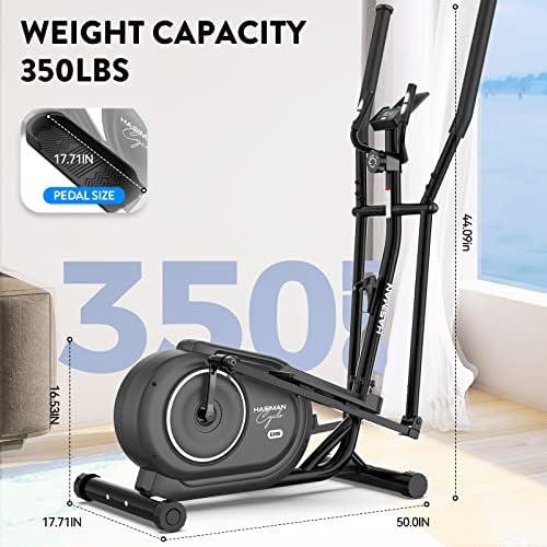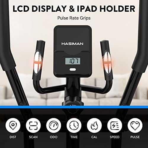 HASIMAN Elliptical Exercise Machine, Elliptical Machine for Home Use, Adjustable Magnetic Elliptical with Pulse Rate Grips and LCD Monitor, 350LB Weight Capacity