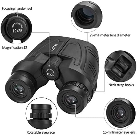 - PORTABLE, COMPACT AND SMALL BINOCULARS DESIGN. One hand can be mastered when you use the birding watching binoculars for opera, bird watching camping, traveling, wildlife watching, football games, cruise or other outside activity, the low light night vision goggles(Not for completely dark night) is more convenient for using and carrying.
